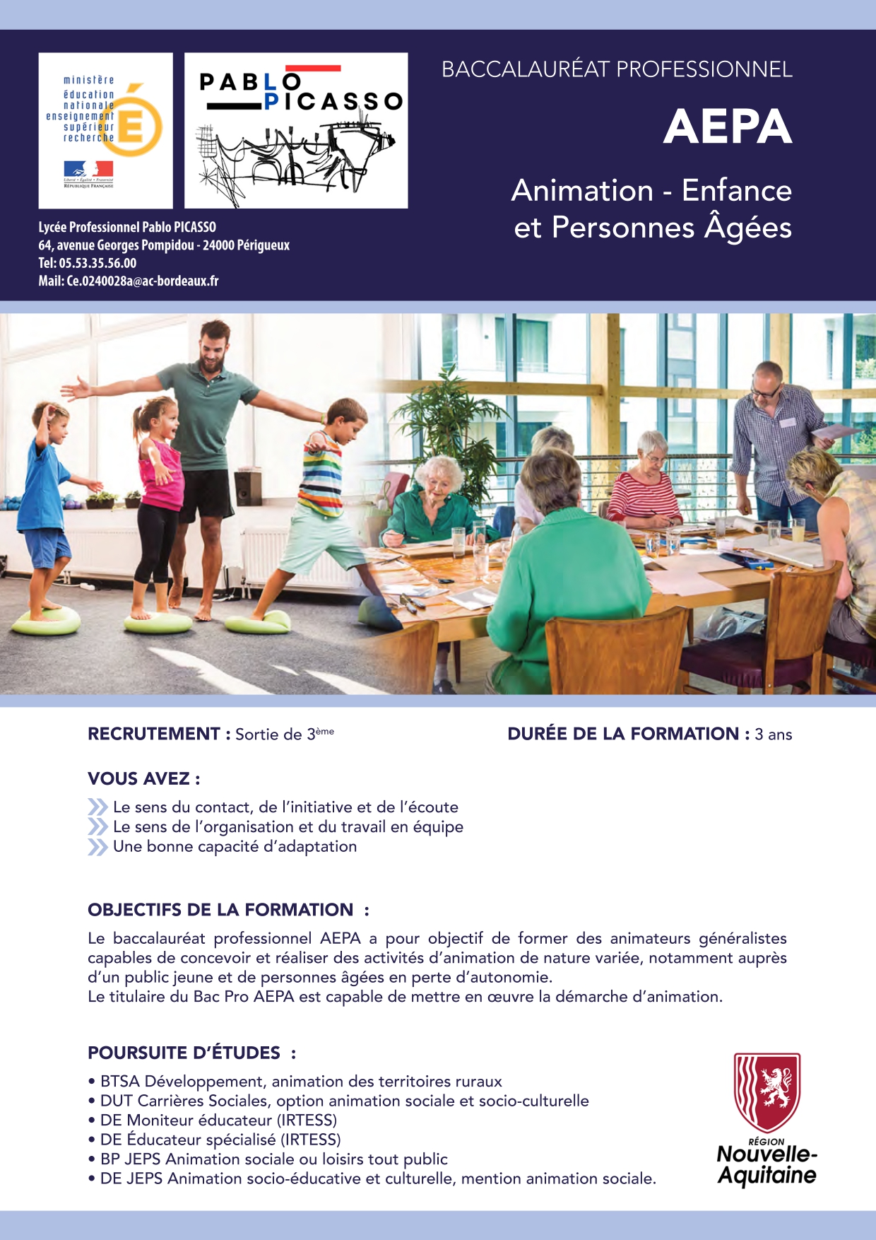 Le Lycée professionnel Pablo Picasso invite collégiens, lycéens en voie de réorientation et leurs famille à venir découvrir les formations de l'établissement, à rencontrer les enseignants de chaque filière, à visiter plateaux techniques, service de restauration et internat :