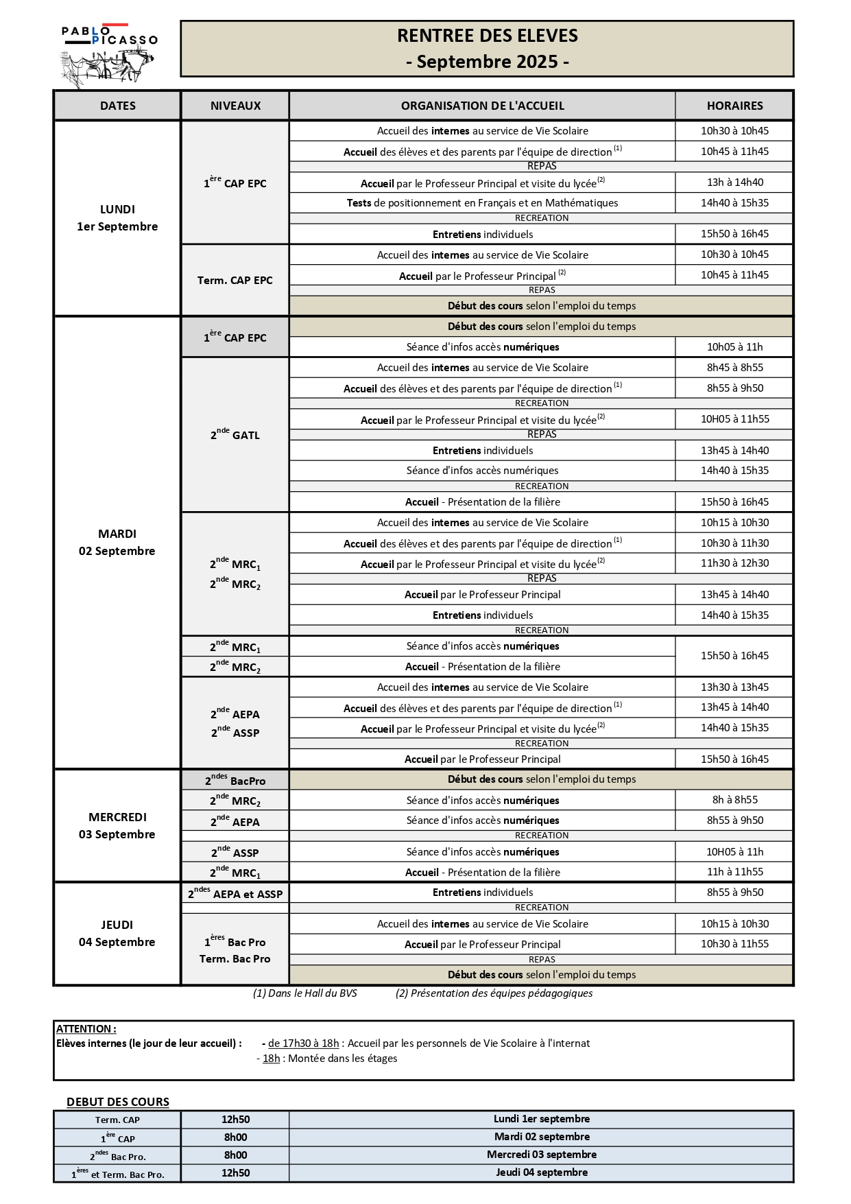 Le lycée Pablo Picasso sera fermé à compter du vendredi 11 juillet 2025 à 12h00.