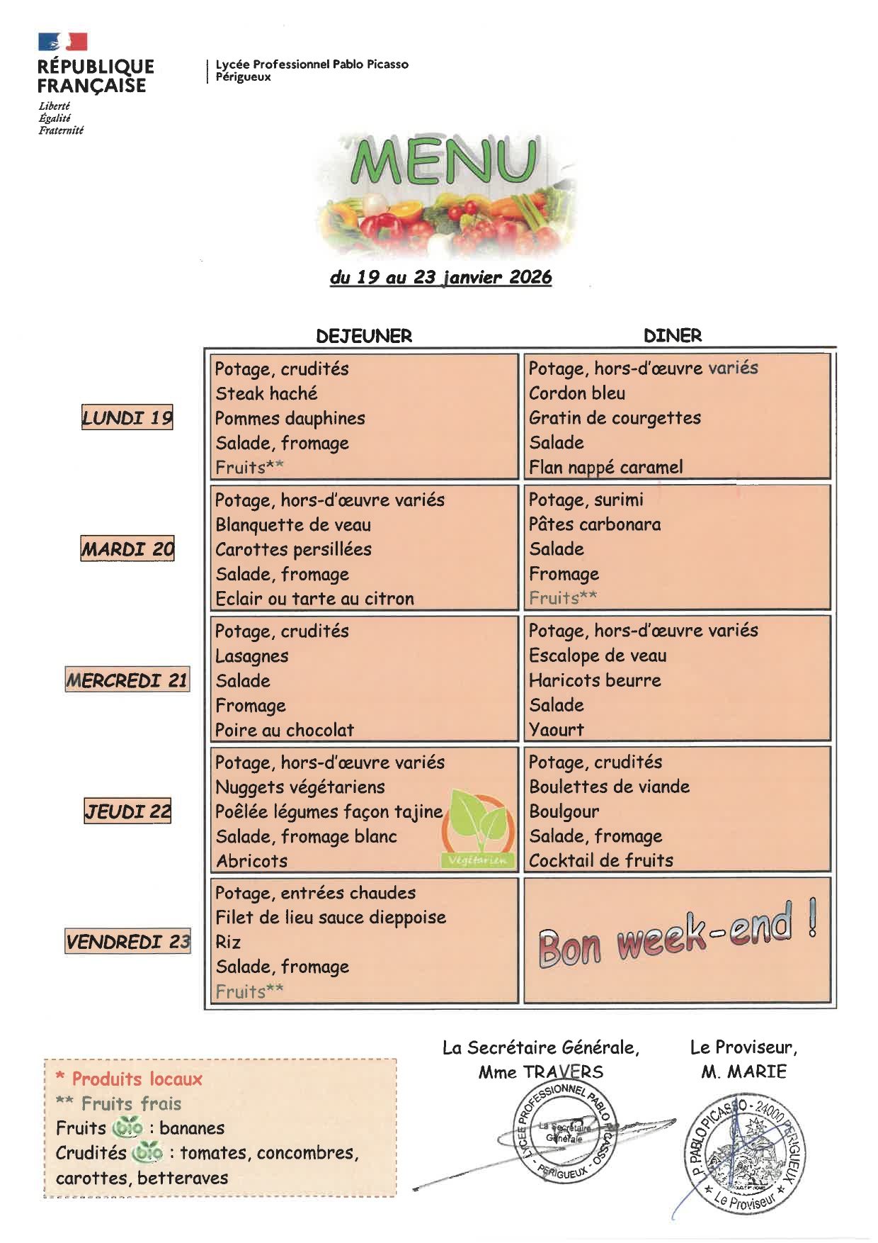 Menu Cantine